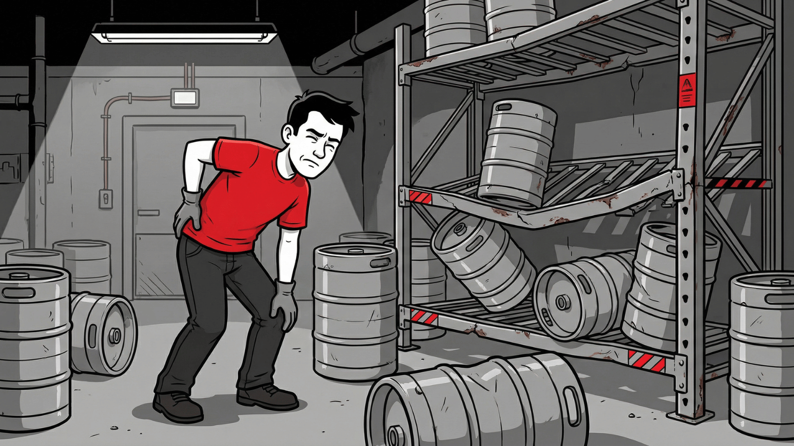 Then the safety risk rises. A rack does not need to collapse to become dangerous. A subtle tilt changes how a keg sits. A shifted frame makes placement less predictable. In a cramped space, that unpredictability is what leads to strains and injuries. Even without an incident that becomes a workers' compensation case, greater physical effort leads to more fatigue, more frustration, and more turnover.